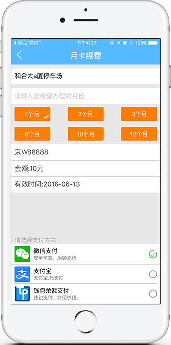 通过泊立方停车APP,在线对本小区的停车场月卡续费,避免排队等待。