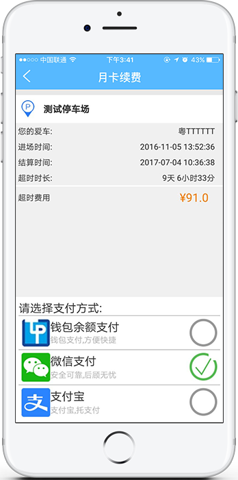 支持账户余额、微信支付、支付宝缴费,免去现金交易找零钱的烦恼,各种优惠券、代金券减免支付,停车不再贵。